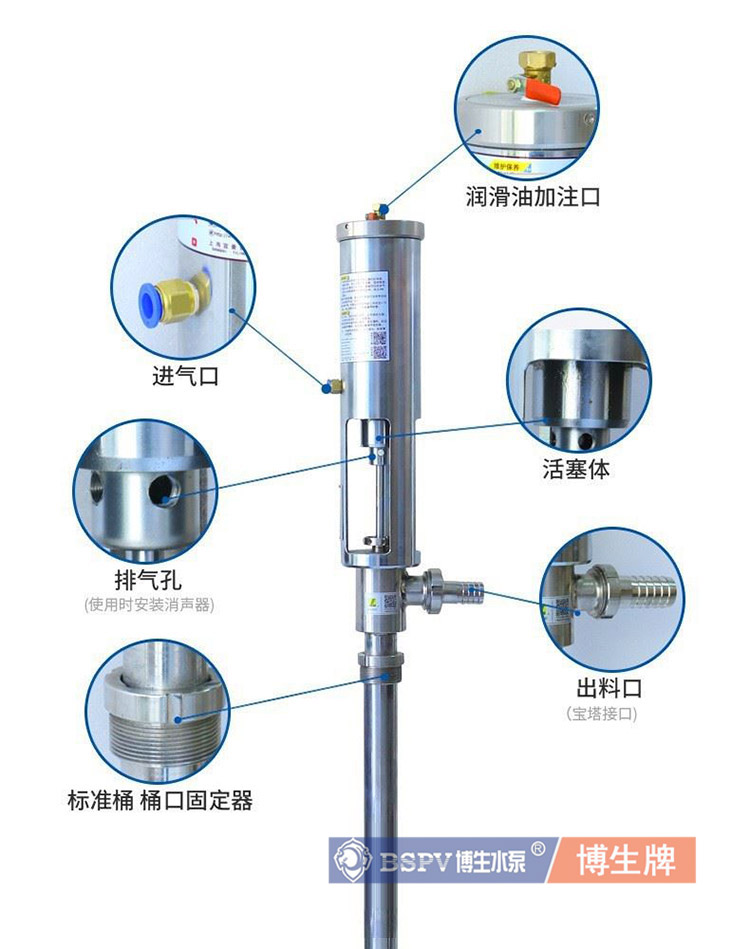 BSY-A0.8型氣動(dòng)漿料泵(柱塞泵)(簡稱:氣動(dòng)油桶泵,又稱氣動(dòng)漿料泵、皮革漿料泵、打料漿料泵、氣動(dòng)抽液泵、氣動(dòng)柱塞泵、打料泵浦、氣動(dòng)泵浦、氣動(dòng)涂料泵)。氣動(dòng)漿料泵應(yīng)用于人造革、移膜革、壓延革、彩涂板、印染、醫(yī)藥、涂層、化工、紡織、噴漆、噴涂、薄膜鍍鋁、彩鋼瓦等行業(yè)。適用于高粘度(VIS)≤12萬CPS/25℃的化工漿料輸送,具有**耐腐防沉淀、低噪音、節(jié)能等功能。是理想的移動(dòng)輸送設(shè)備。 本產(chǎn)品采用氣壓差的作用,使活塞上下運(yùn)行,帶動(dòng)導(dǎo)料活塞開閉,起到提料的作用。調(diào)整給氣動(dòng)漿料泵工作氣體的流量與氣壓來控制和調(diào)節(jié)氣動(dòng)漿料泵送料流量。結(jié)合感應(yīng)開關(guān)能使之自動(dòng)化工作。